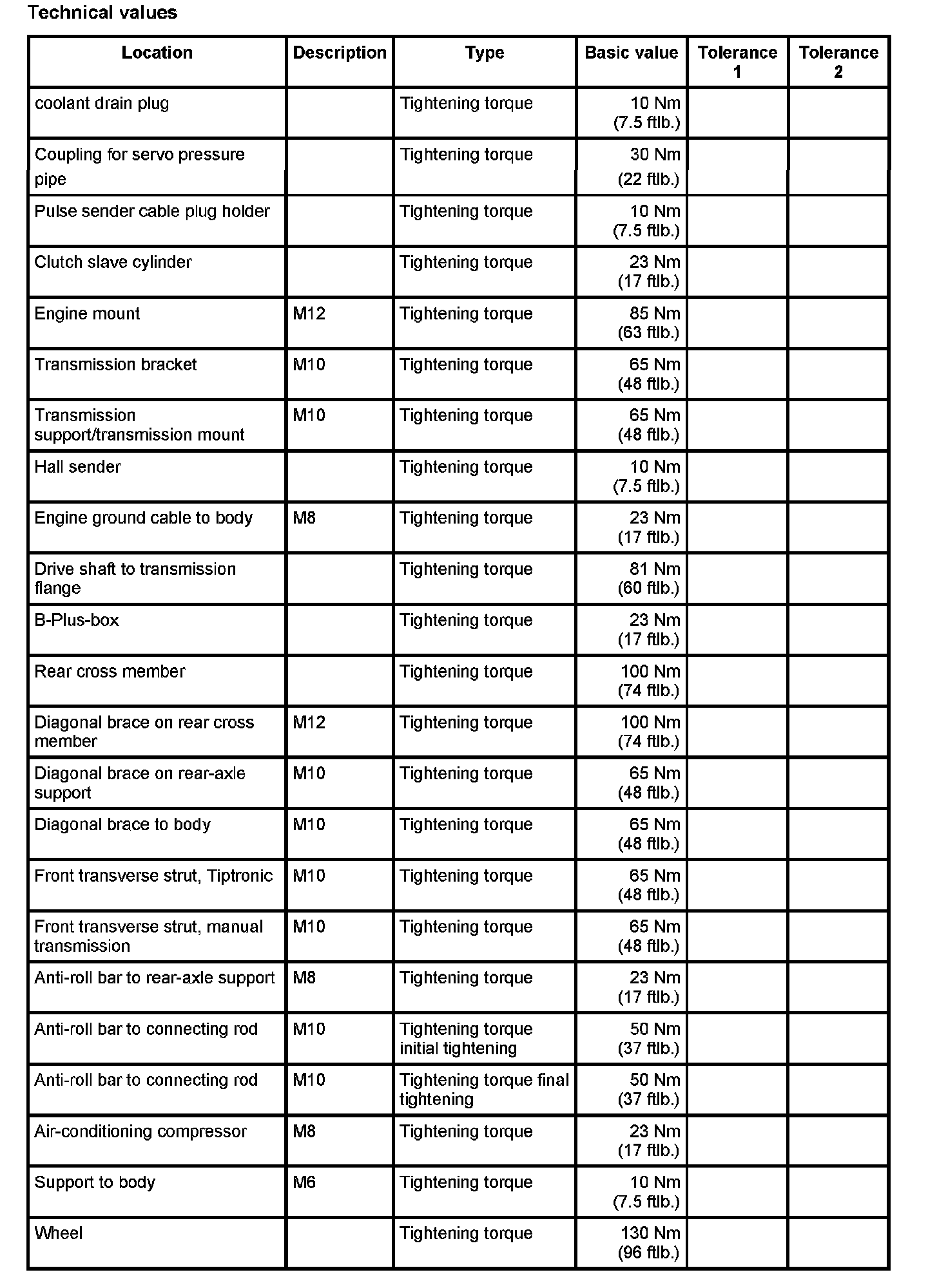 Technical values
