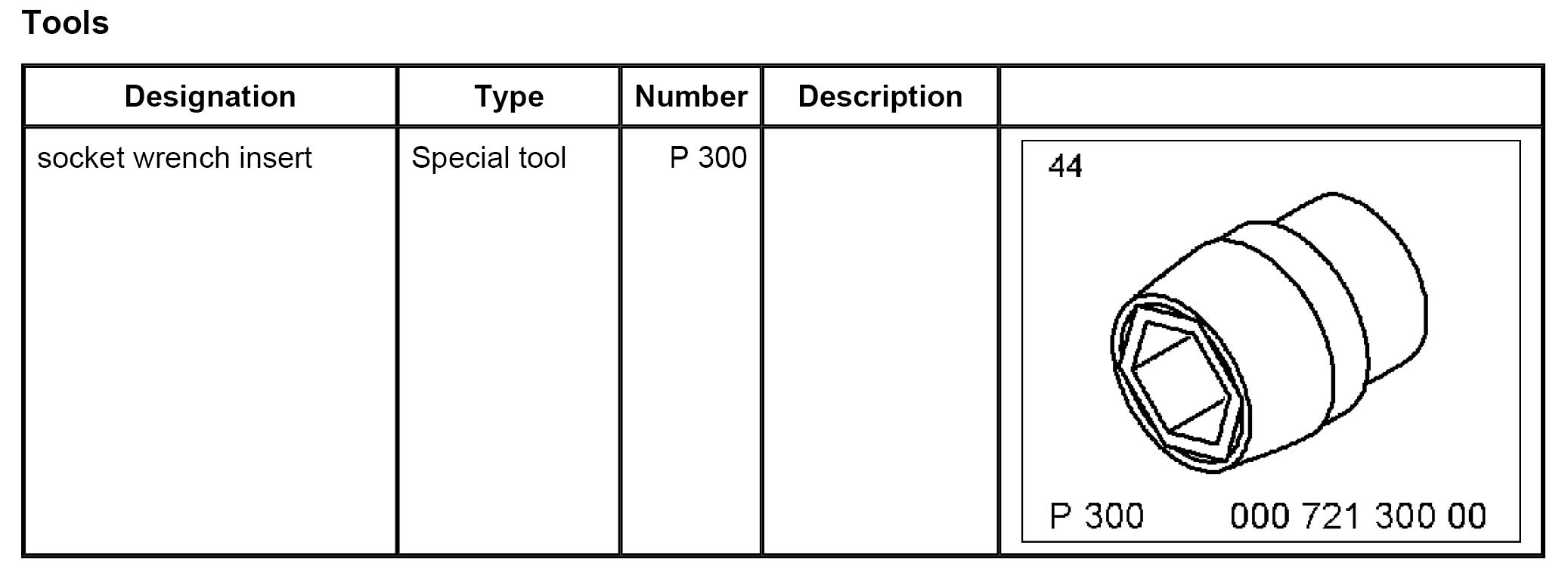 1. Remove rear wheel. Use a socket wrench insert P 300 to avoid damage to the wheel rims.