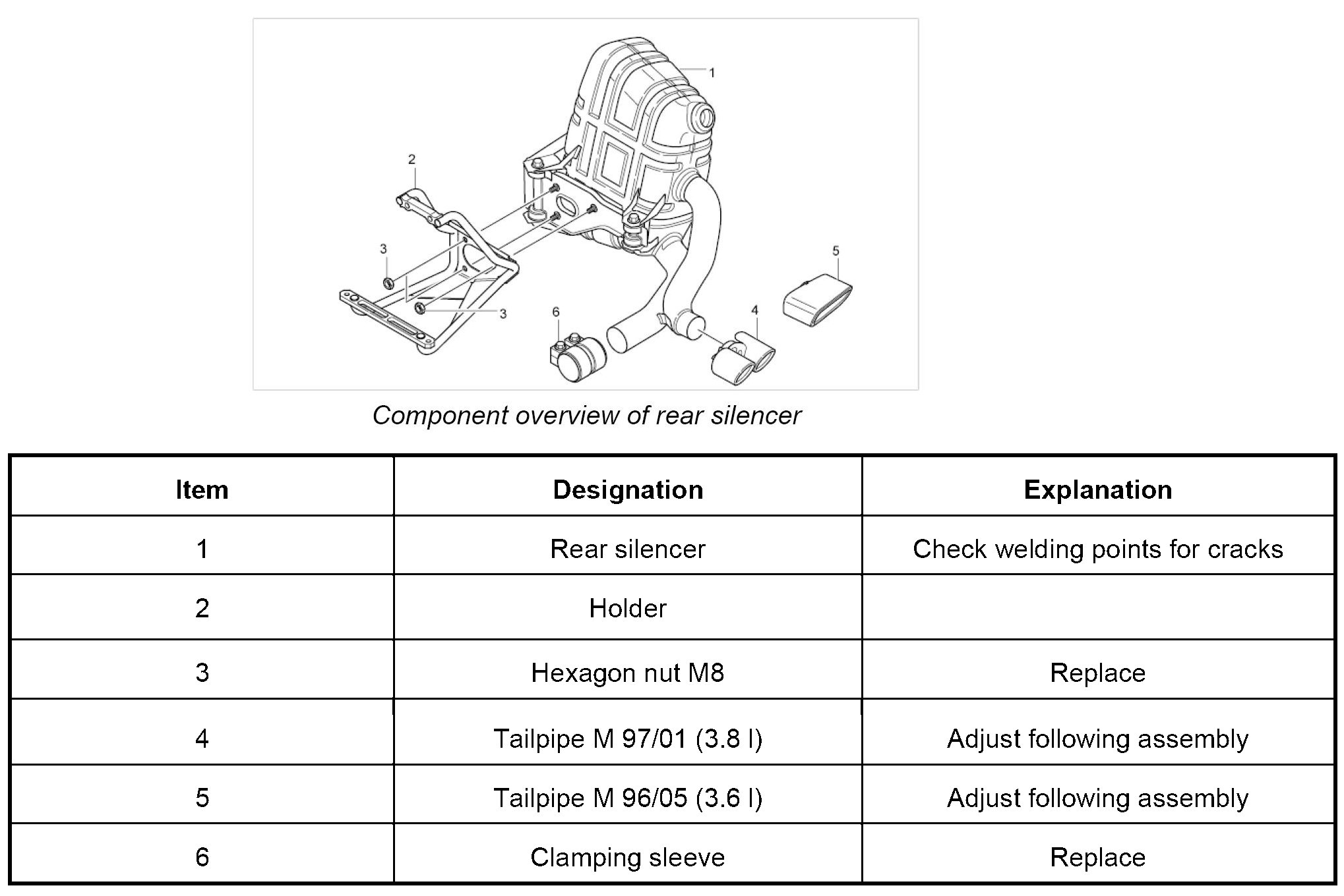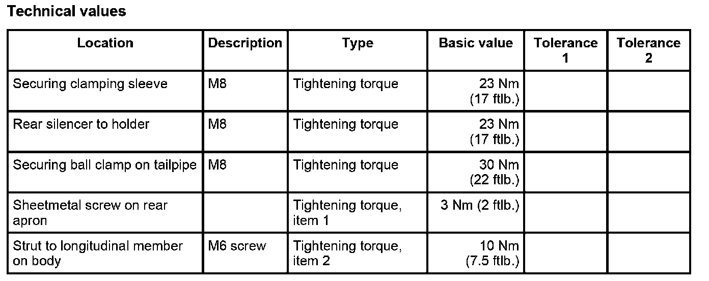 5. Fit and adjust tailpipe. - Tightening torque: 30 Nm (22 ftlb.)