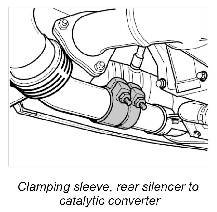 4. Push clamping sleeve towards the catalytic converter and lift silencer in the direction of the wheel housing and out of the vehicle.