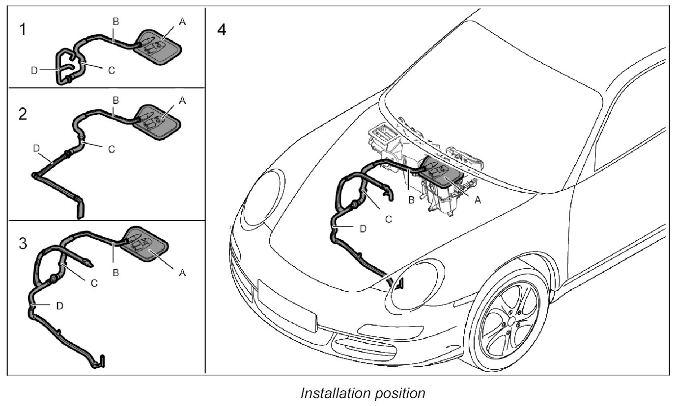 2. Route booster air guide -D- around the body and insert into the upper air guide.