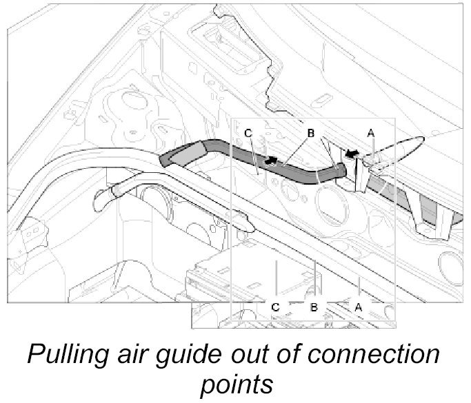 2. Pull air guide -B- out of air guide -A- and then out of air guide -C-.