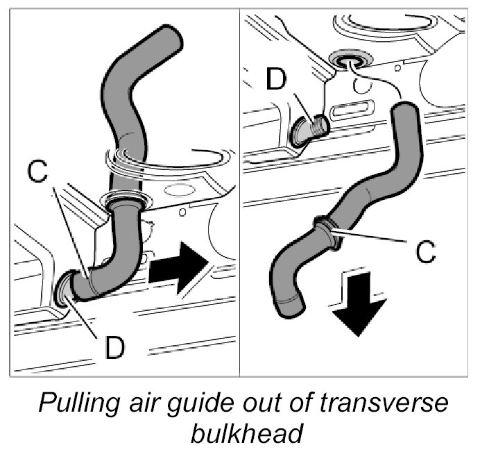 1. Pull air guide -C- out of connection -D-.