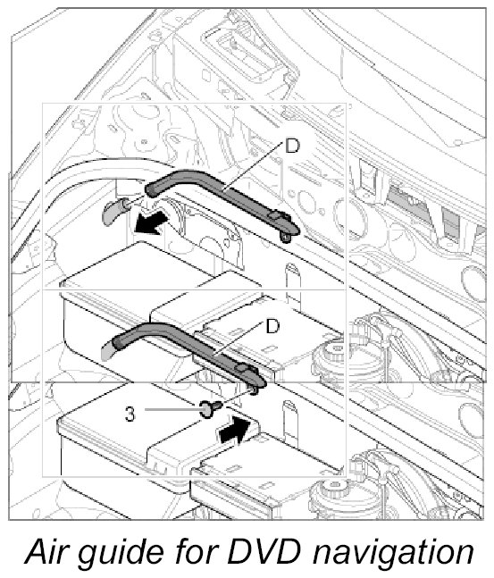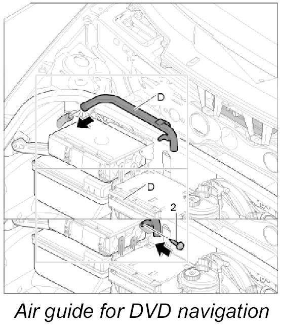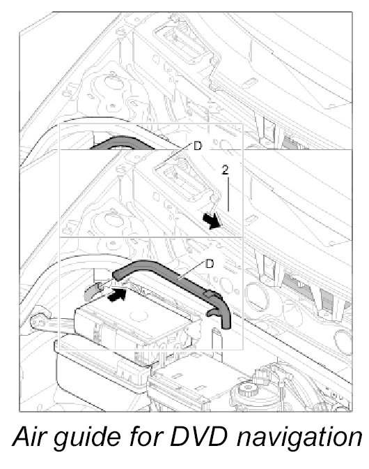 Air guide D, luggage compartment air guide for DVD navigation with carbon canister and with CD autochanger