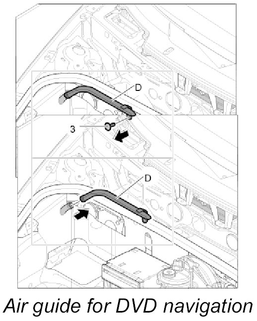 Air guide D, luggage compartment air guide for DVD navigation without carbon canister and with CD autochanger