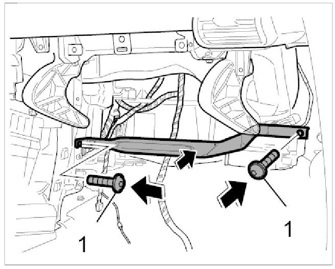 4. Install support strut and tighten with the two fastening screws -1-.