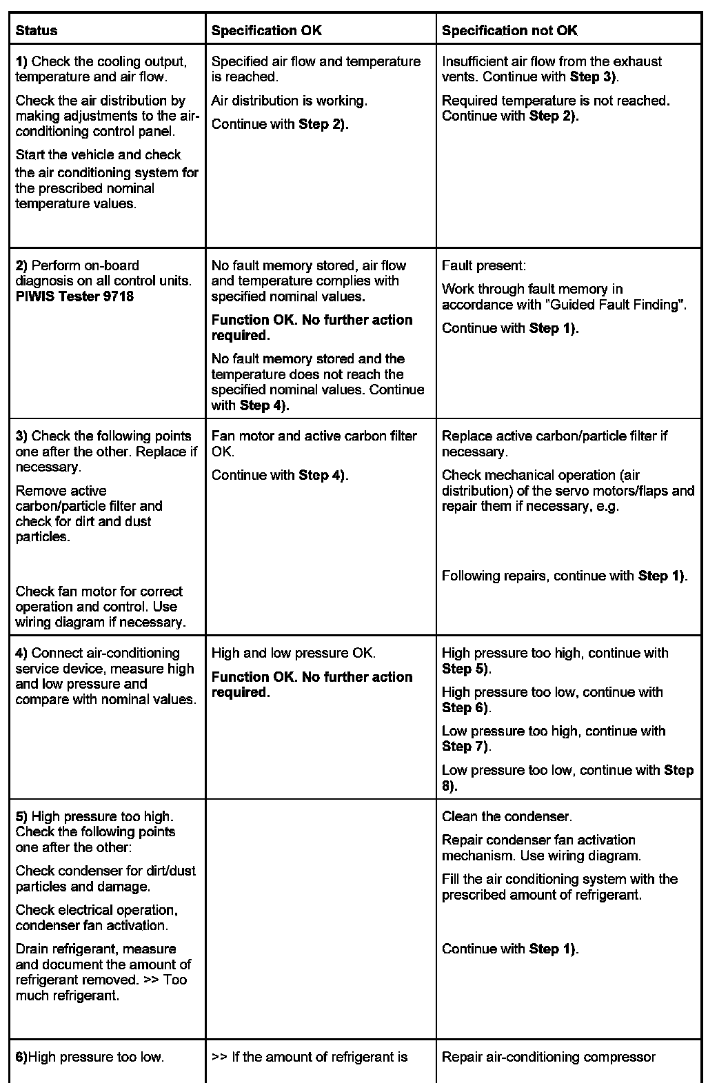 - The troubleshooting steps shown must be used if complaints are received about the cooling output of the air conditioning system.