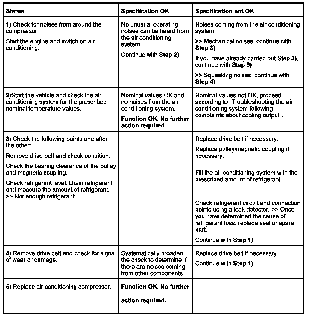 - The troubleshooting steps shown must be used if complaints are received about noises in the air conditioning system.
