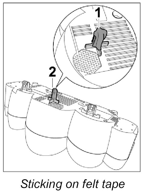 2. Stick felt tape -1- to the centering journal of the instrument cluster -2- in the middle.