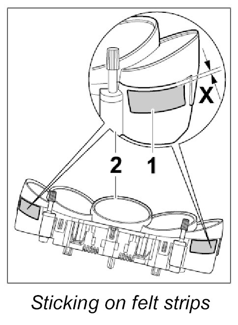 3. Stick felt strips -1- on the left and right of the instrument cluster -2- at position -X= 3 mm-.
