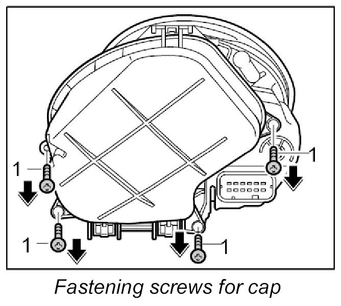 1. Unscrew four fastening screws -1 - from the cap.
