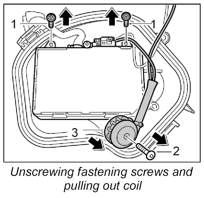 1. Unscrew the fastening screw -2- for the coil and pull the coil -3- out of the cap.