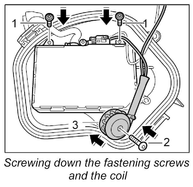 3. Push on the coil and screw it down with the fastening screw.