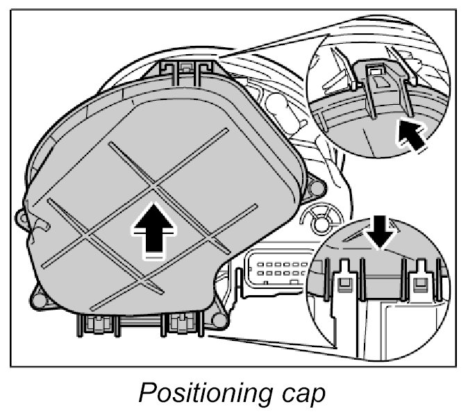 1. Position cap on main headlight and press into place, making sure that the cap engages once at the top and twice at the bottom.