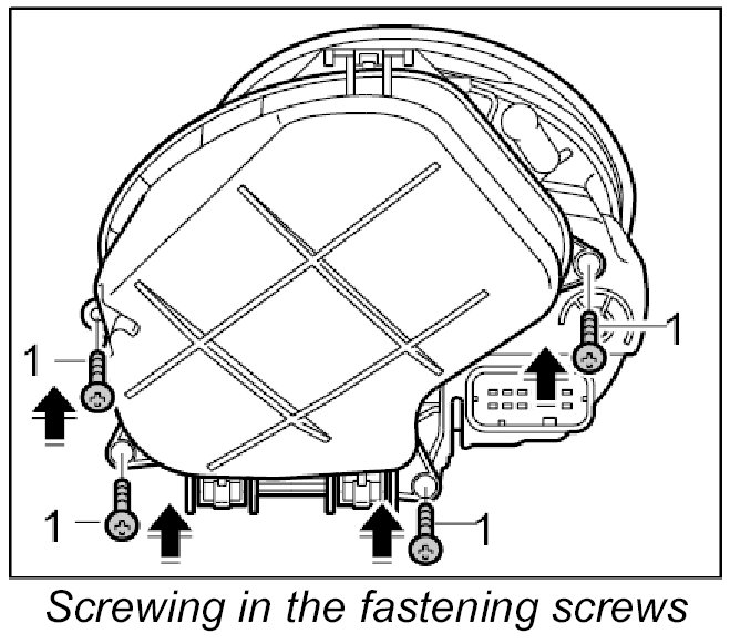 2. Insert the control unit in the headlight cap and screw down with both fastening screws -1-.