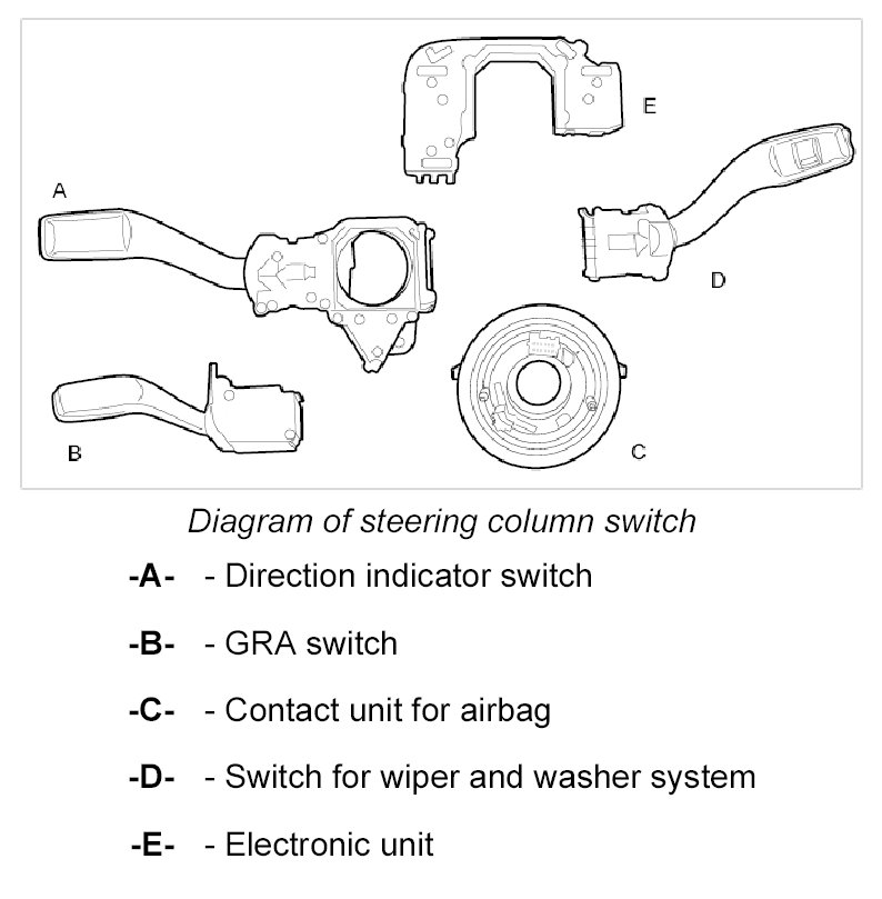 3. Turn the steering column switch round and remove the electronic unit -E-.
