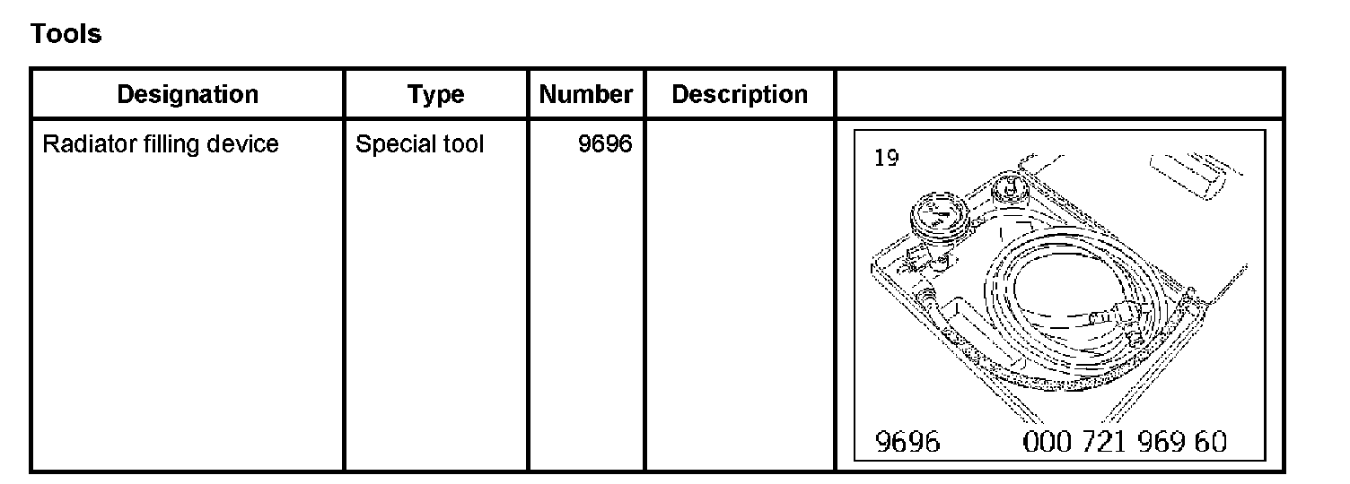 Note: The process of filling and bleeding the cooling system continues to be performed using the special tool Radiator filling device 9696.