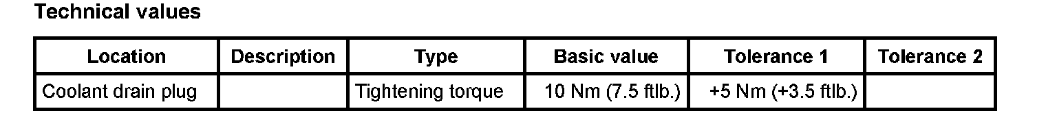 ^ The quantity of coolant available should exceed the amount required to fill the system by about two liters in order to prevent air being sucked in.