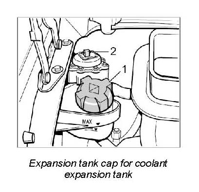 4. Check the fluid level with the aid of the marks on the expansion tank. If necessary, correct the coolant level after the engine has cooled.