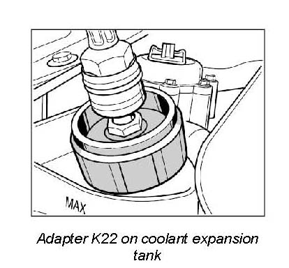 1. Screw cap adapter for coolant expansion tank (K 22) onto the expansion tank and attach the flexible extension (Fz 100) to the cap.