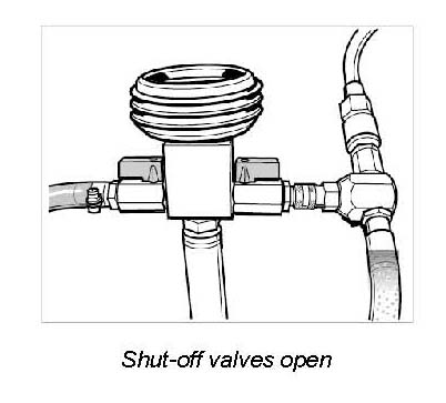 7. Open both shut-off valves on the vacuum pressure gauge until the transparent filler hose has completely filled with coolant.