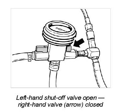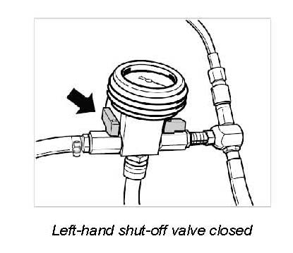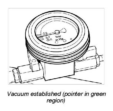 8. Close the left shut-off valve on the vacuum pressure gauge and allow a vacuum to build up in the coolant circuit.