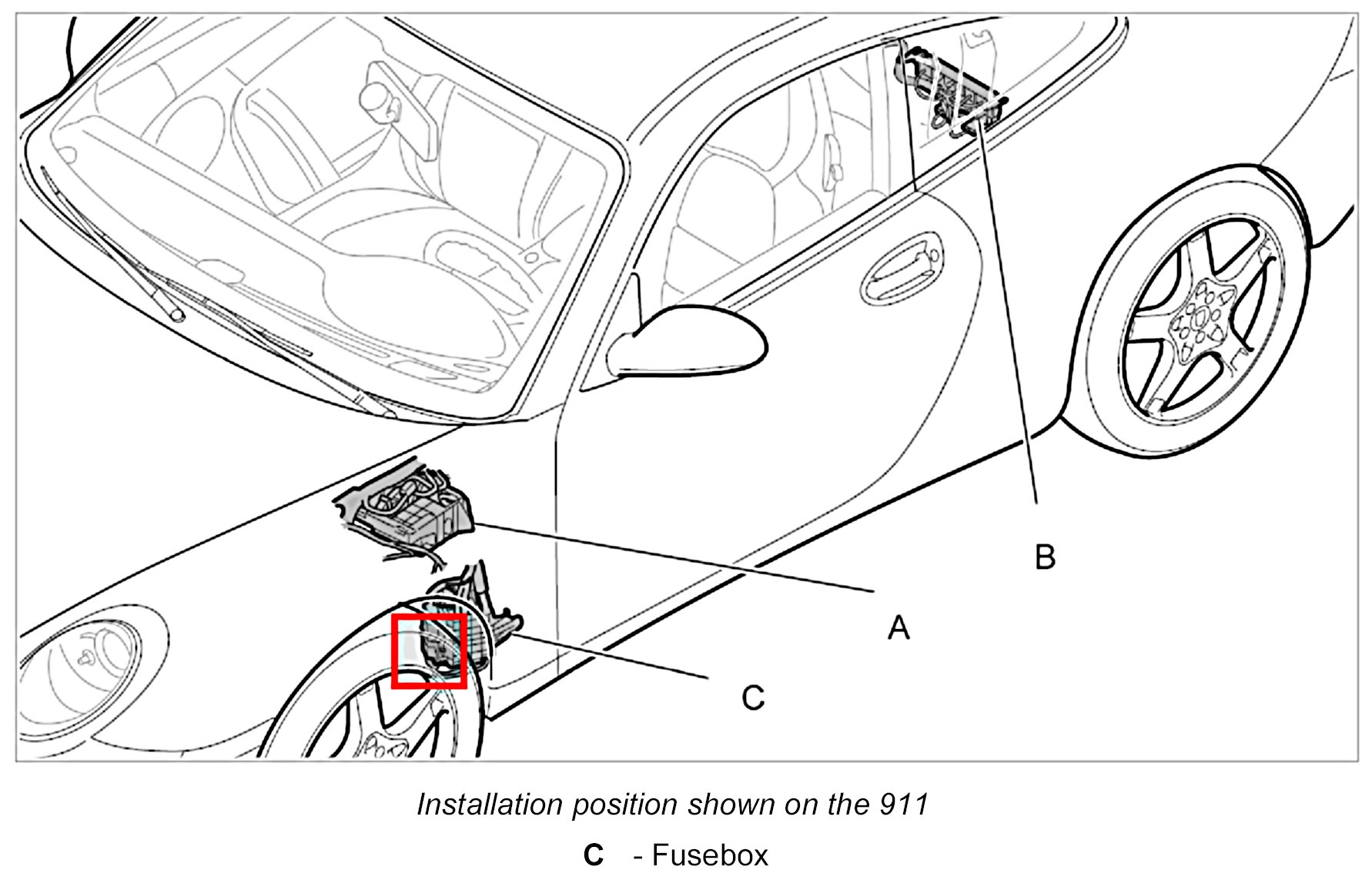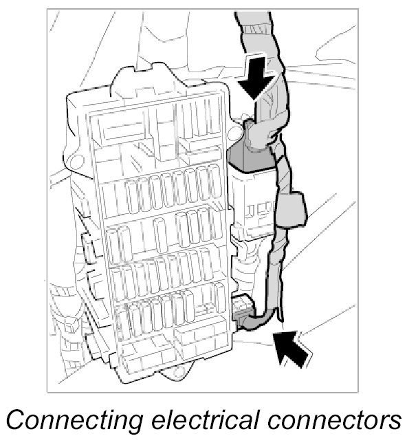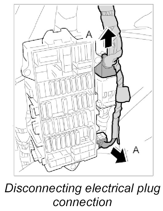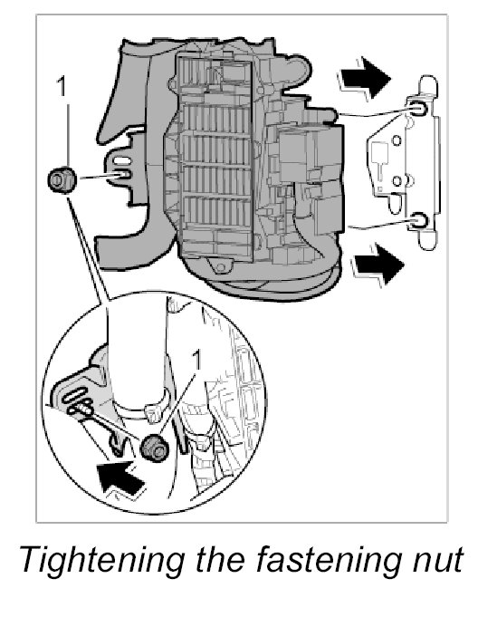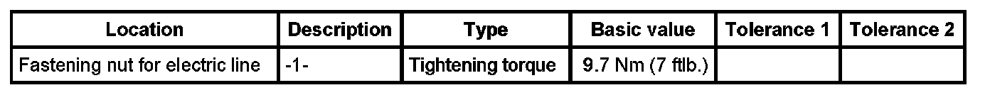 1. Engage the fusebox on the support and secure with the fastening nut -1-. Ensure that the electrical lines are not trapped or installed live. Tightening torque: 9.7 Nm (7 ftlb.)
