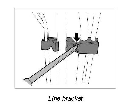 4. Close all line brackets (retaining clips) and fit the spacers (clips) between the pressure and return line. Check the positioning of the steering lines once again and adjust them if necessary.