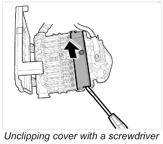 1. Unclip the cover for the fuse elements with a screwdriver.