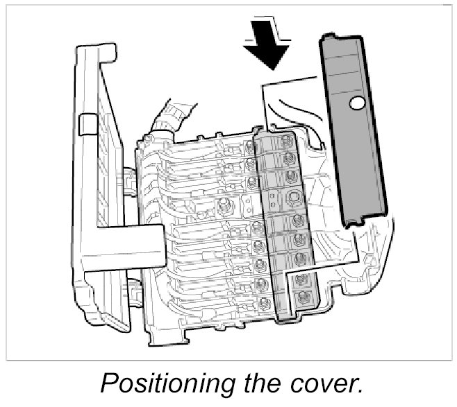 4. Insert the blue cover in power distributor and clip in place.