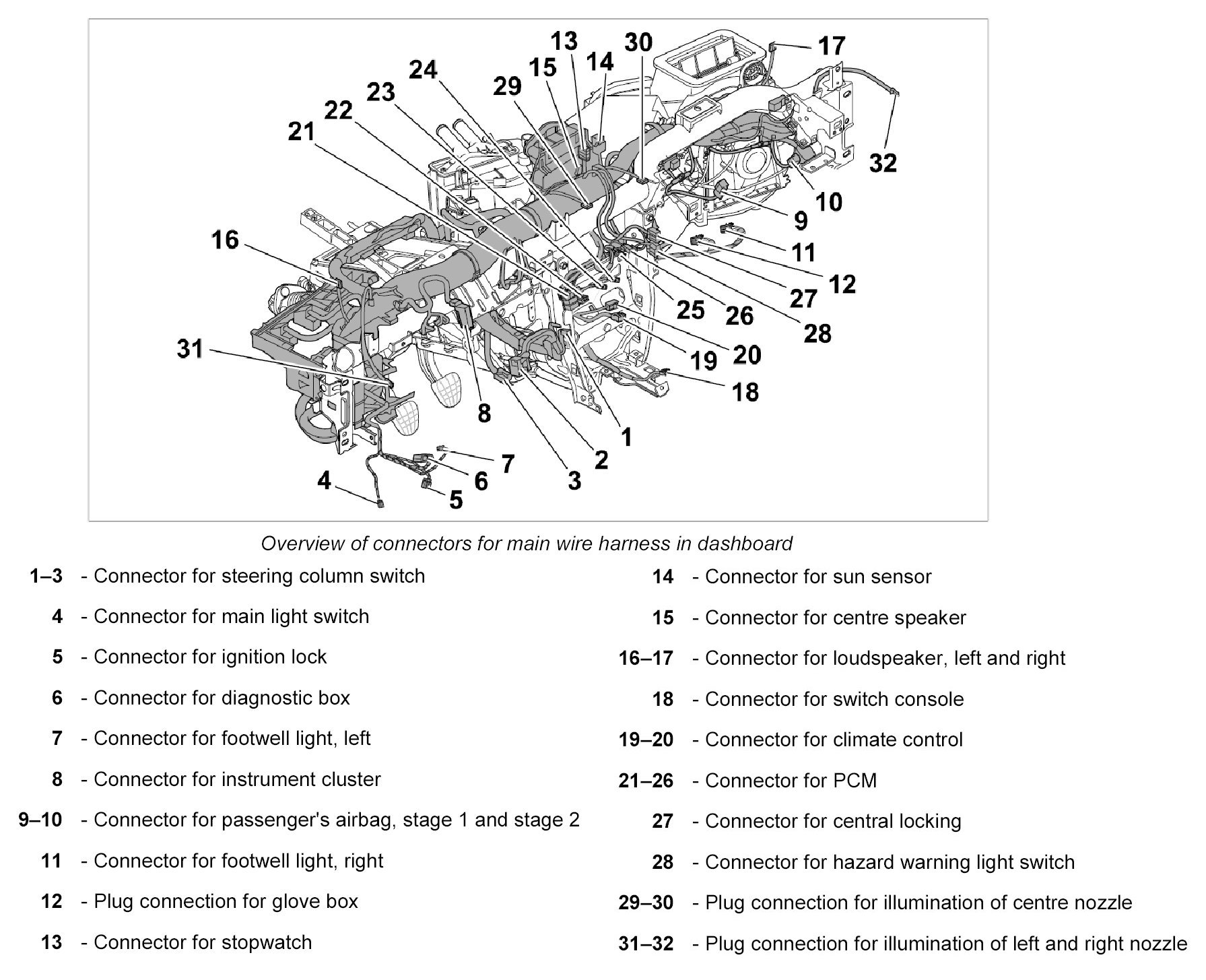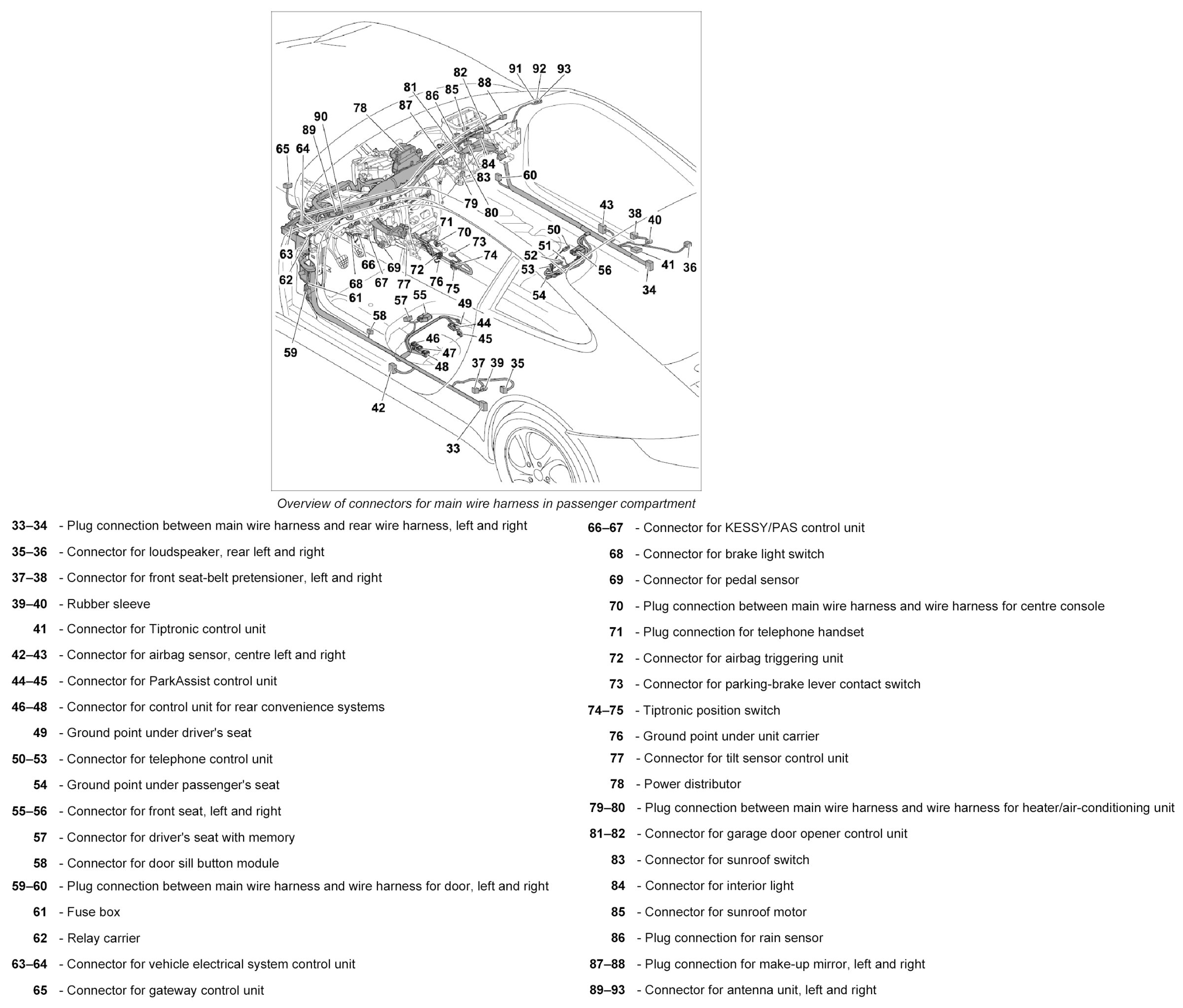30.1. Clip in wire harness for Tiptronic control unit.