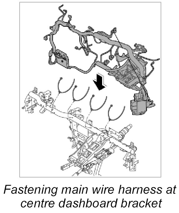 1. Fasten main wire harness at centre dashboard bracket.