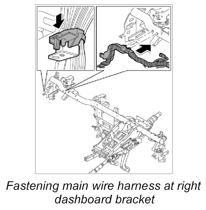 2. Fasten main wire harness at right dashboard bracket.