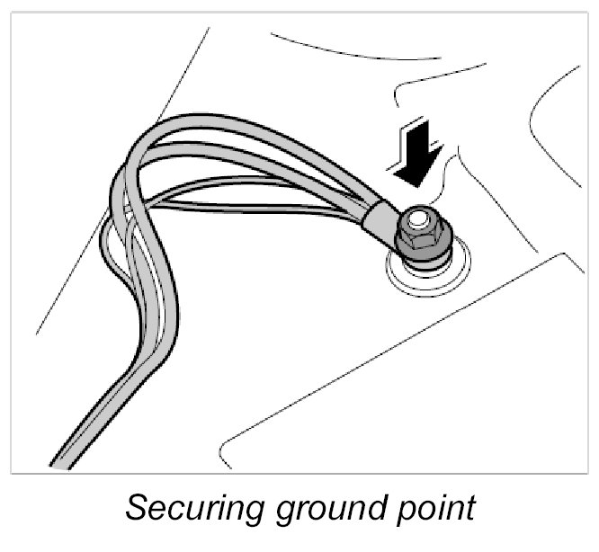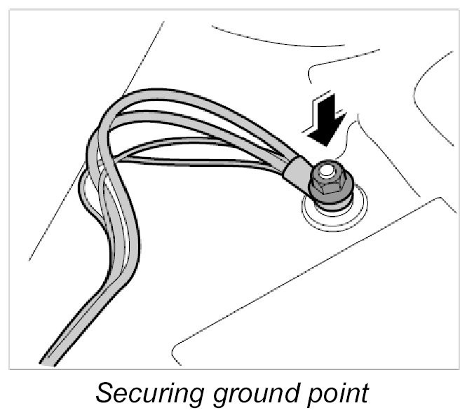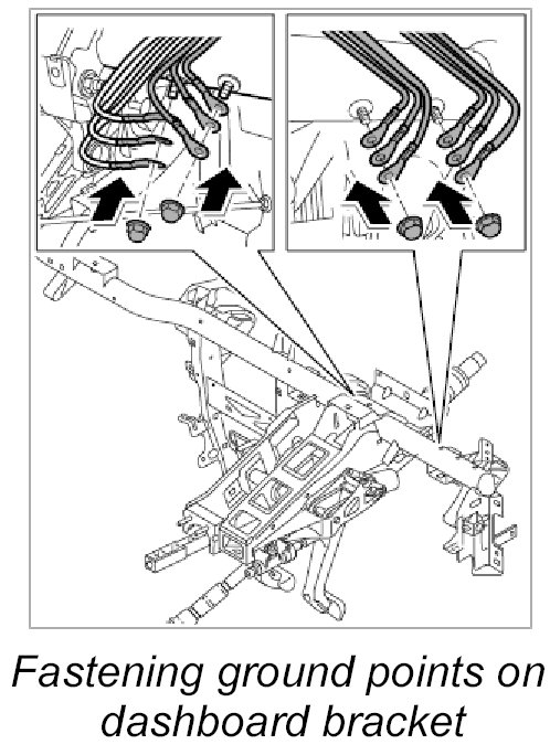 7. Fasten ground points on dashboard bracket.