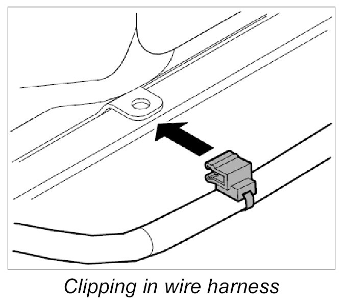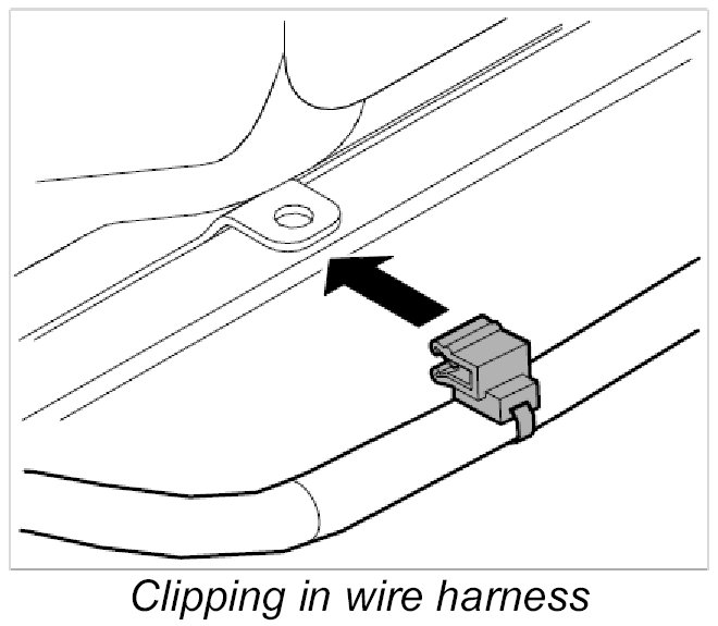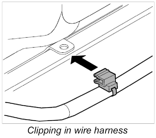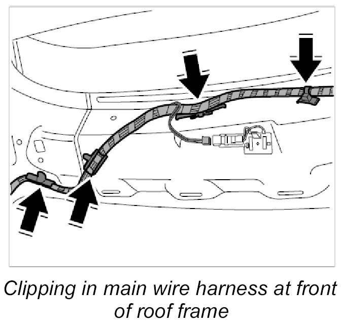 10. Clip in main wire harness at front of roof frame.