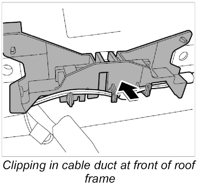 11. Clip in cable duct at front of roof frame.