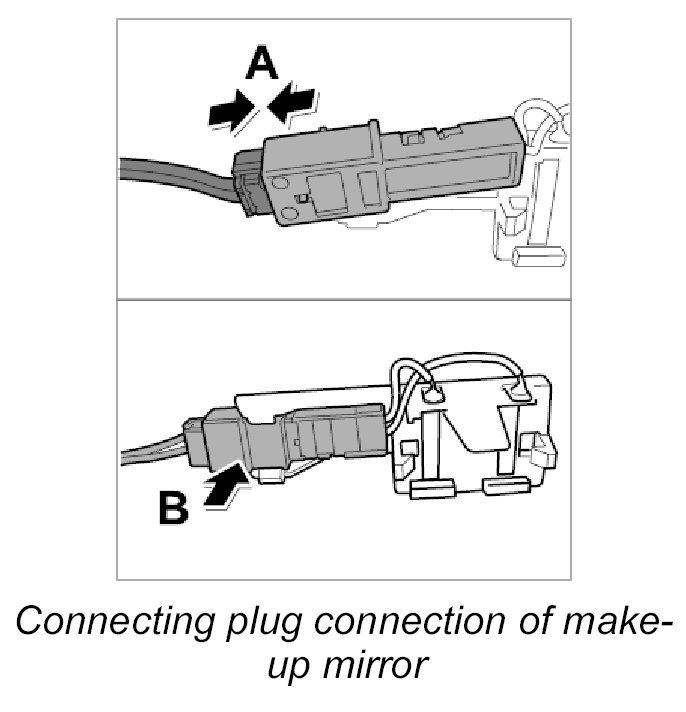 12. Connect plug connection of make-up mirror, left and right -87 and 88-.