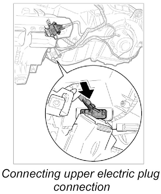 14.2. Push in upper electric plug connection at heater/air-conditioning unit until it engages securely.