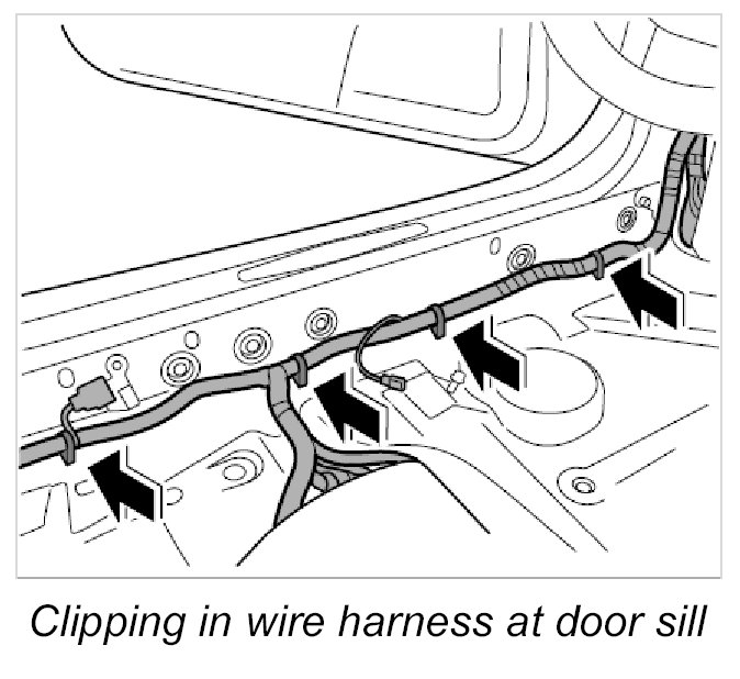 22. Clip in wire harness at door sill.