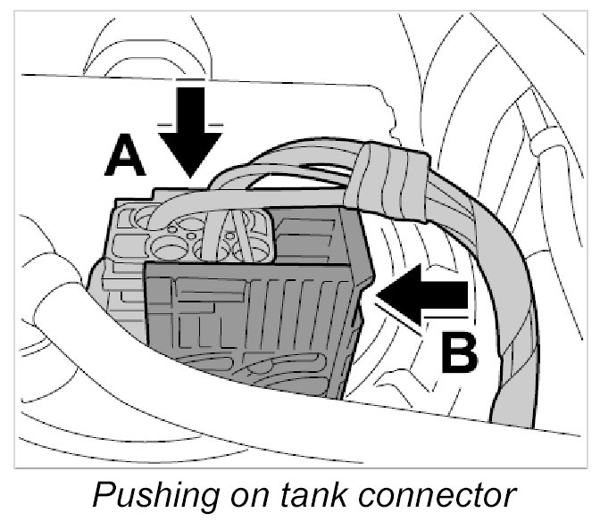 20. Push on connector for filler flap switching element -21- until it is felt to engage.