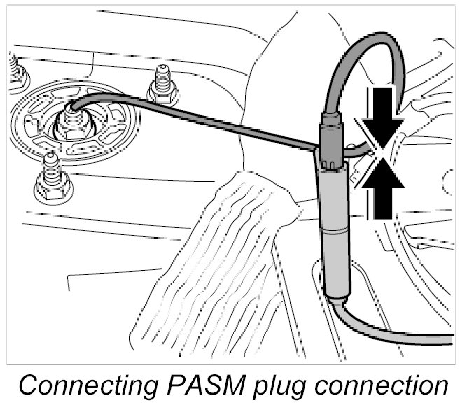 10. Connect plug connections for PASM, front left and right -30 and 31- until they are felt to engage.