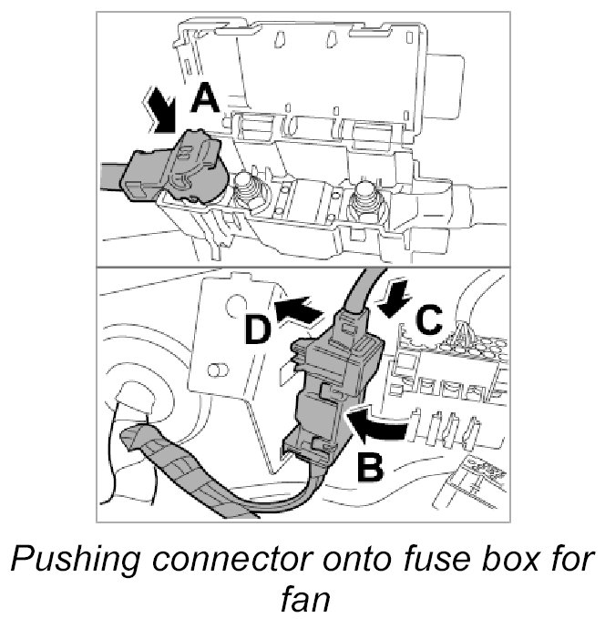 33. Push connector onto fuse box for fan -2-.