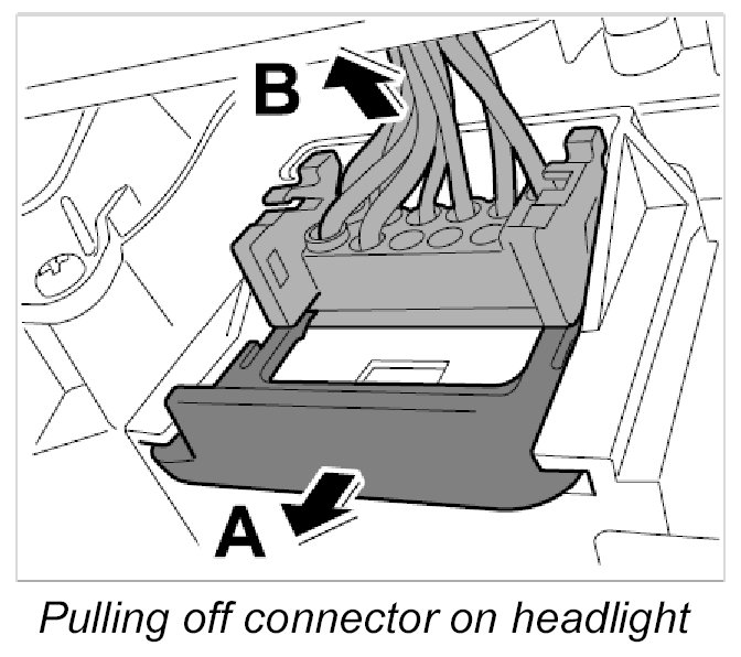 4.2. Pull off connector on headlight at left and right -arrow B-.