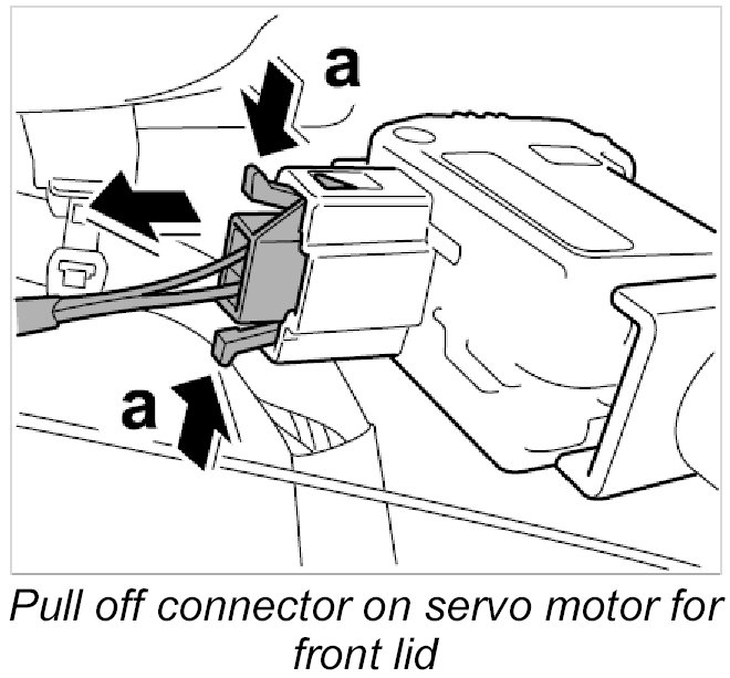 13. Release and pull off connector on servo motor for front lid release -16-.