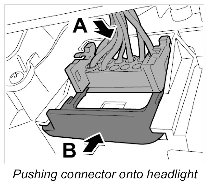 18.1. Push connector onto headlight at left and right -arrow A-.