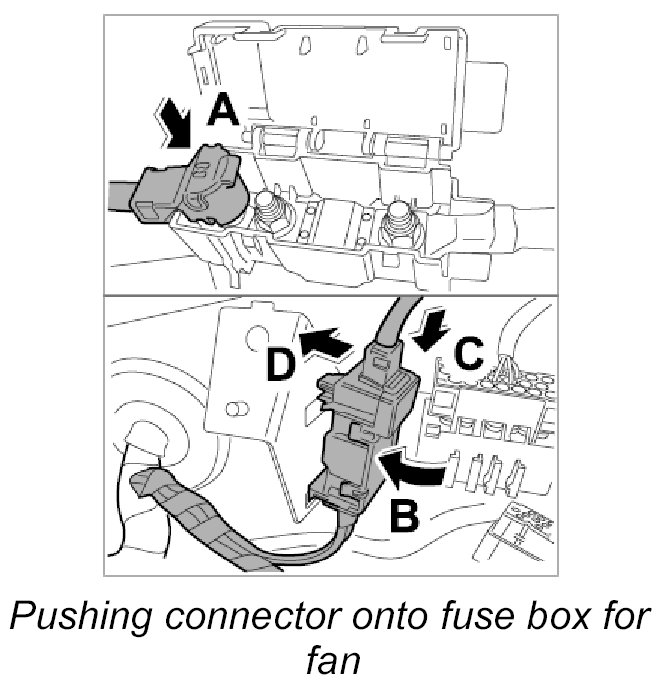 20. Push connector onto fuse box for fan -2-.