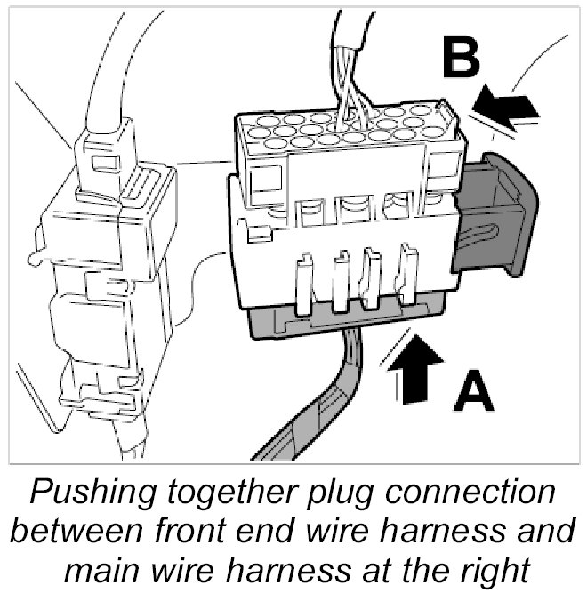 4. Push together plug connection for front-end wire harness to main wire harness, left -20- until it engages securely.