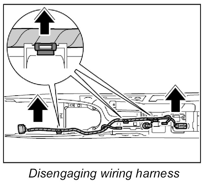 2. Disengage retaining clips with wiring harness on centre console and remove the harness.
