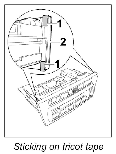 2.2. Stick tricot tape -1- around the four spacers for the air-conditioning system regulator -2-.