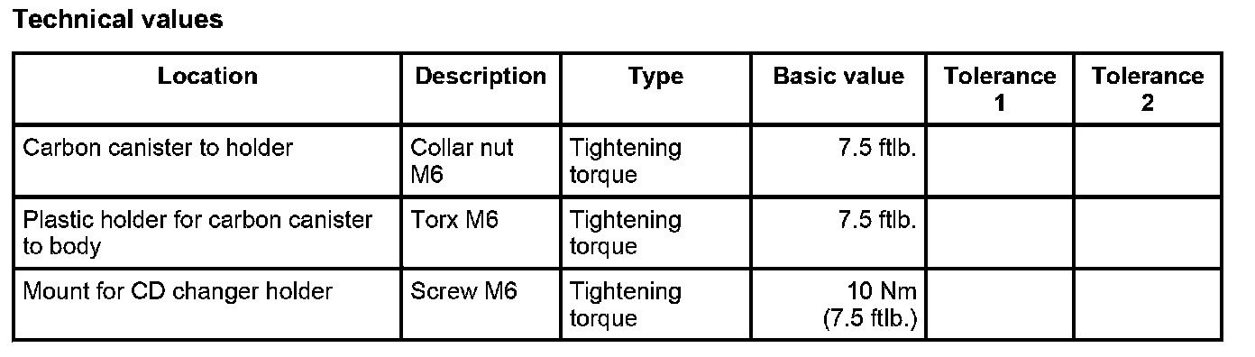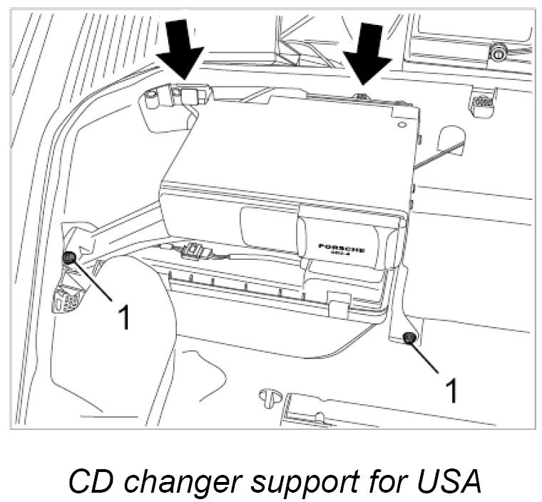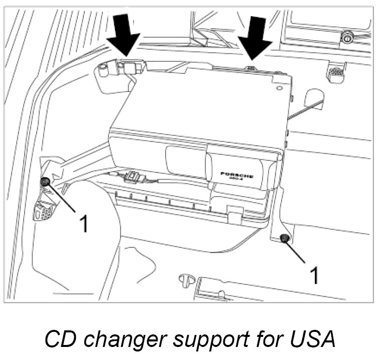 3. Screw in and tighten fastening screws M6 -1- for CD changer support. - Tightening torque: 10 Nm (7.5 ftlb.)